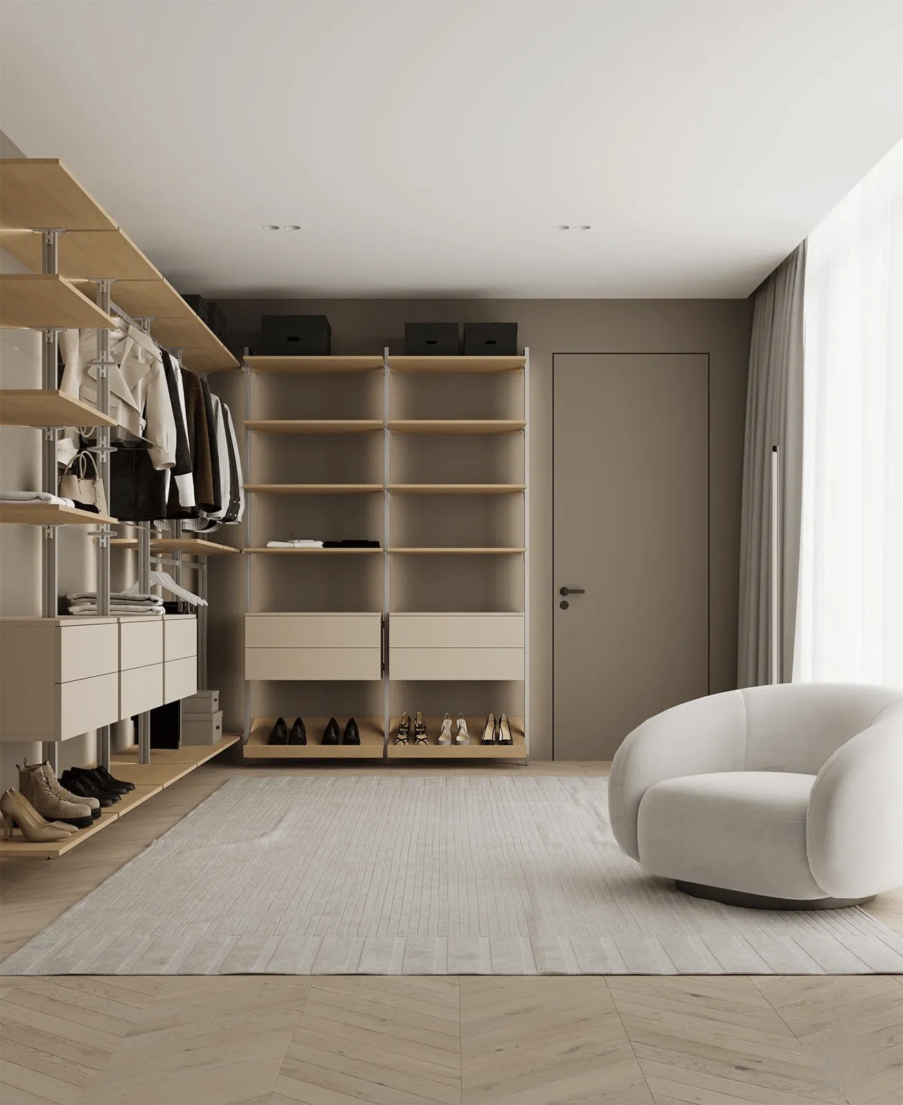 Навесные элементы: ЛМДФ (толщина 18 мм), декор Бежевый Супрамат / шпон дуба (толщина 19 мм), цвет #189 (масловоск Белый) / стекло прозрачное (толщина 6 мм)