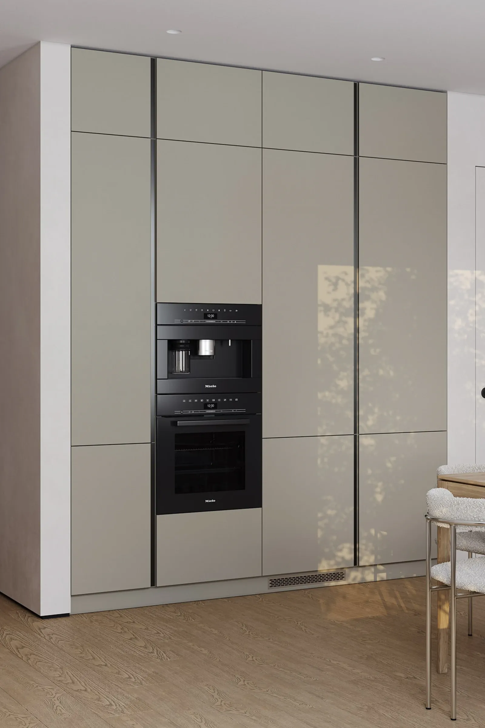 Витрины: Алюминиевый профиль А-6 Черный Матовый (скрытая петля AIR PUSH), стекло Тисненое-4 Графит прозрачное