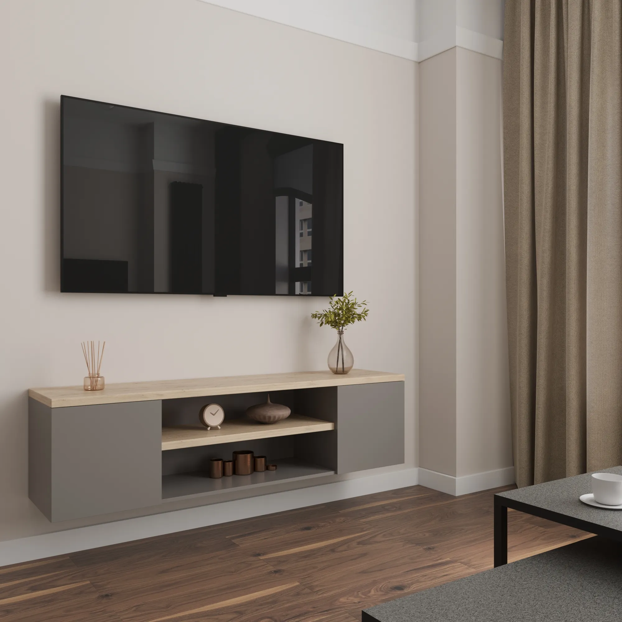 ТВ-Тумба Руана серый + каштан