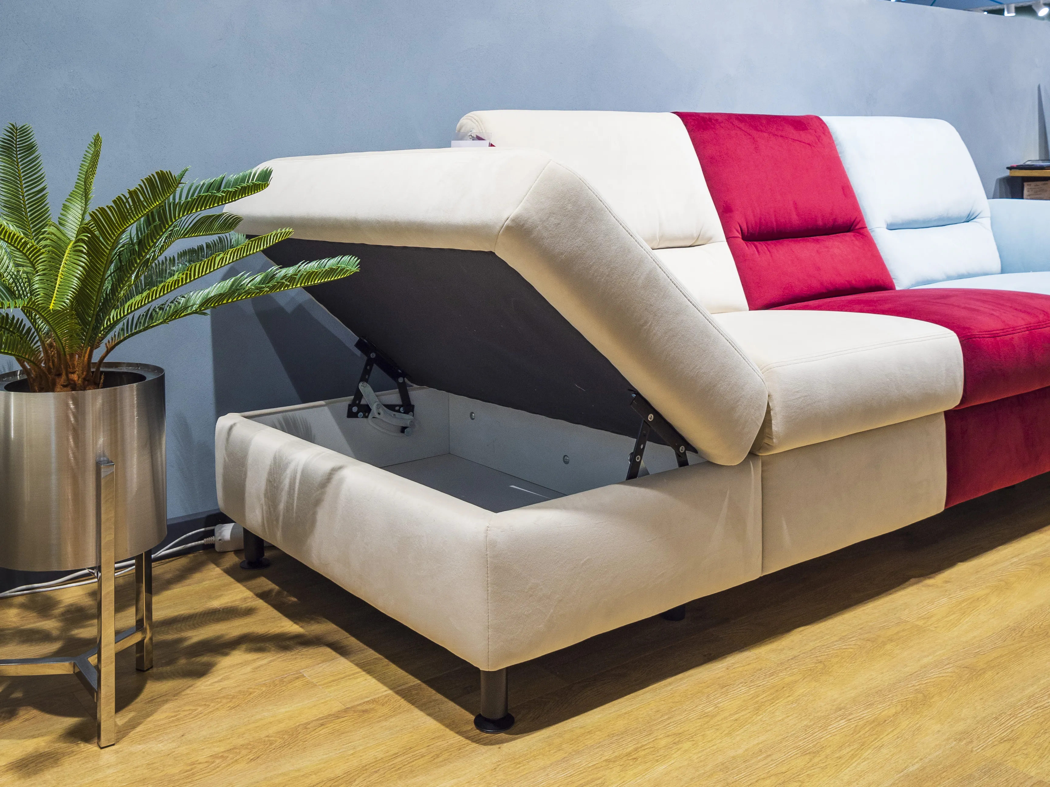 ✔ Одноместный элемент с ящиком для хранения (S) и пуфом слева (F).