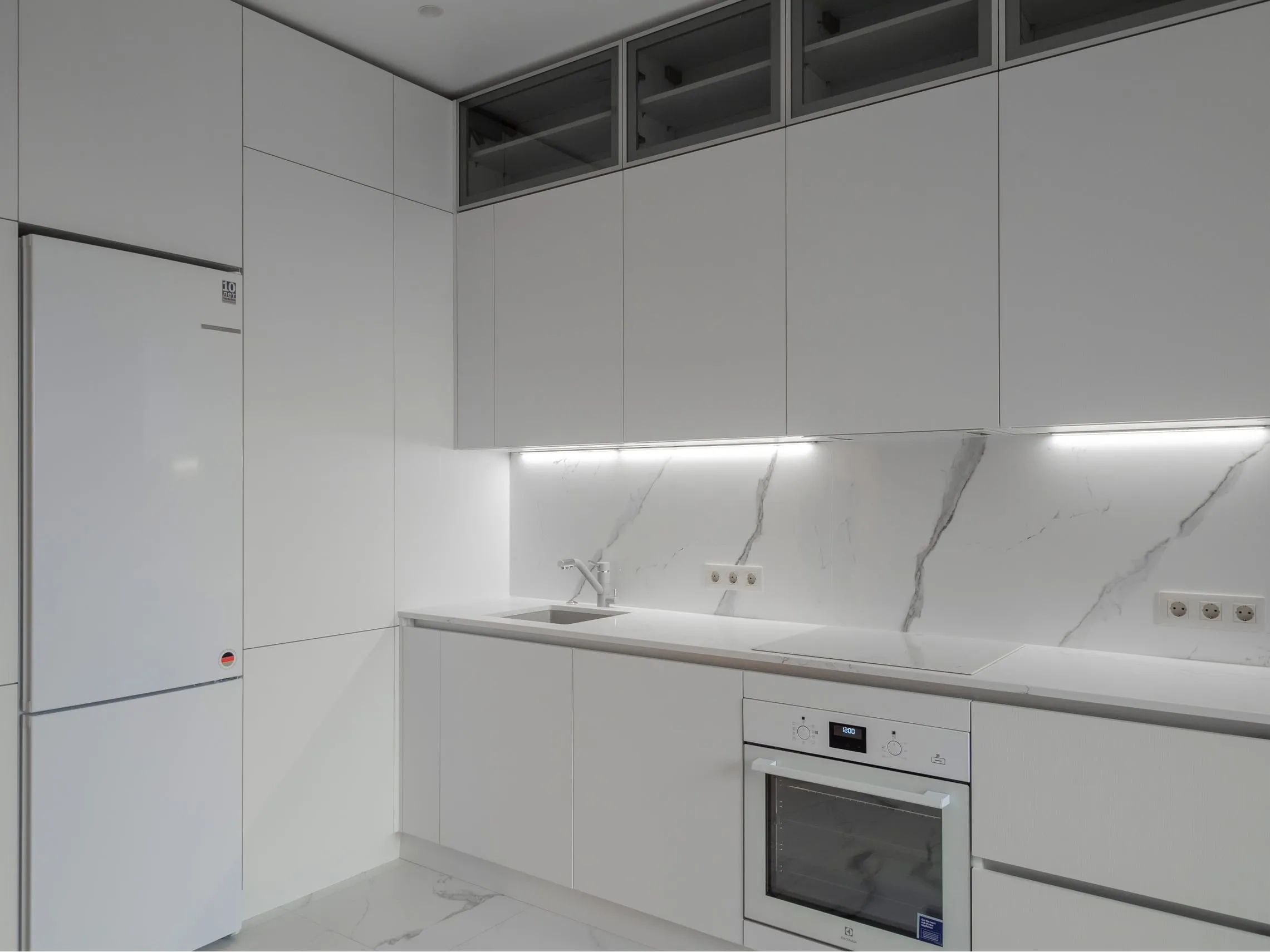Фасады: МДФ ПВХ AGT 3023; Шпон Ясеня