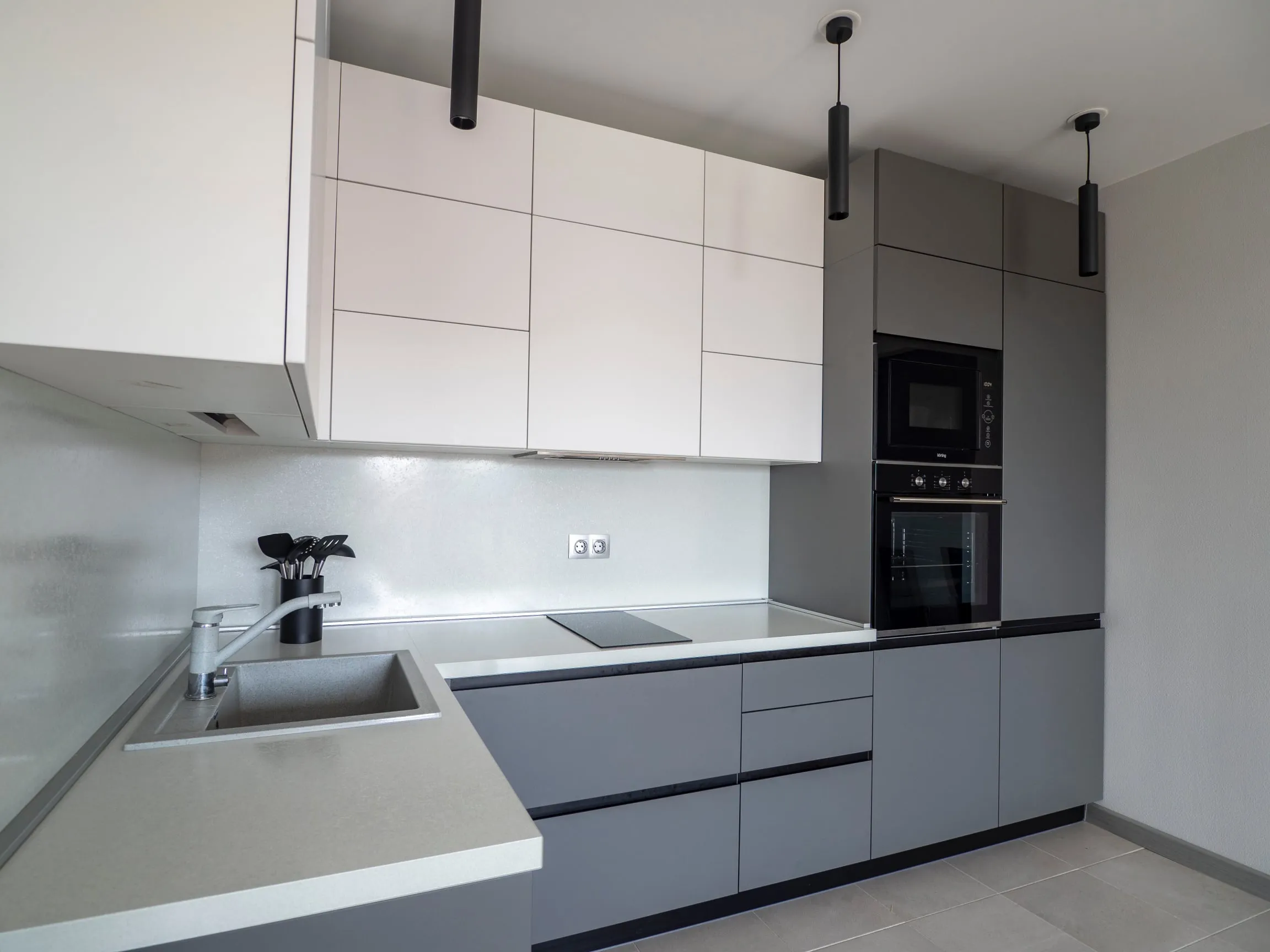 Фасады: МДФ Эмаль Система Оникс серый / МДФ Эмаль Система Белый супрамат